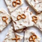 Keywords: peanut butter, pretzel bark, white chocolate, no bake candy, easy dessert, sweet and salty snack, holiday treat, peanut pretzel bark