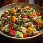 Pesto Chicken Salad is a fresh and flavorful dish that comes together quickly, perfect for a light lunch or a simple dinner. The combination of tender chicken, vibrant pesto, and crisp vegetables makes it both satisfying and healthy.