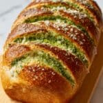 This Pesto Parmesan Sourdough is a flavorful artisan bread combining the tangy depth of sourdough with aromatic basil pesto and savory grated parmesan cheese. Perfect for sandwiches or as a crusty accompaniment to meals, this loaf features a delightful crispy crust and a tender, cheesy interior achieved through a cold fermentation and Dutch oven baking method.
