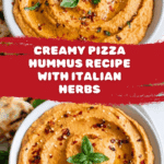 Keywords: pizza hummus, hummus recipe, vegan dip, Mediterranean dip, nutritional yeast dip, garlic hummus, tomato hummus, easy hummus recipe