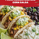 These Pork Carnitas Street Tacos are a delicious and authentic Mexican-inspired dish combining tender, flavorful pork carnitas with fresh corn salsa, creamy guacamole, and crumbly queso fresco, all wrapped in warm, toasted corn tortillas. Perfect for a quick and satisfying meal that bursts with bold flavors and textures.