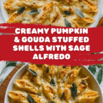 Keywords: pumpkin stuffed shells, gouda pasta recipe, brown butter sauce, sage alfredo, holiday pasta, vegetarian stuffed shells, creamy pumpkin pasta