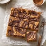 - Add Swirl to Batter: Drop spoonfuls of the brown sugar swirl mixture over the top of the blondie batter. Use a toothpick or clean knife to gently swirl the crumble into the batter for a marbled effect.