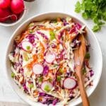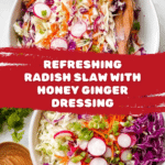 Keywords: Radish Slaw, cabbage salad, honey ginger dressing, healthy side dish, crunchy salad, easy salad recipe