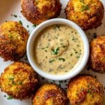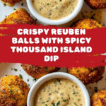 Crispy bite-sized Reuben Balls filled with a savory blend of corned beef, tangy sauerkraut, melty Swiss cheese, and cream cheese, served with a spicy Thousand Island dipping sauce. This appetizer creatively transforms the classic Reuben sandwich flavors into a crunchy, cheesy snack perfect for parties, game days, or comfort food cravings.