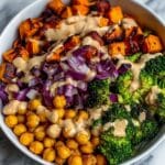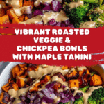 Roasted Veggie & Chickpea Bowls with Maple Dijon Tahini Dressing are a vibrant and nourishing dish featuring roasted sweet potatoes, broccoli, purple cabbage, and crispy chickpeas, all topped with a creamy, tangy maple Dijon tahini dressing. This recipe is naturally vegan, gluten-free, and perfect for a wholesome lunch or dinner. The bowls offer a perfect balance of flavor, texture, and nutrition with easy prep and roasting steps.
