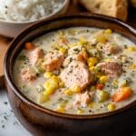Keywords: salmon chowder, creamy salmon soup, seafood chowder, easy chowder recipe, comfort food, dinner soup, New England style chowder