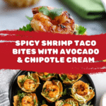 Shrimp Taco Bites are a flavorful and fun appetizer perfect for gatherings or a quick snack. These bite-sized treats combine spicy chili-lime shrimp, creamy avocado, and zesty chipotle sour cream on crispy tortilla chips. They’re easy to make and sure to impress your guests.