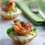Keywords: Shrimp taco bites, appetizer, baked shrimp, chili lime shrimp, avocado sour cream, party snacks, Mexican appetizers