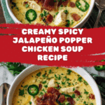 Spicy Jalapeño Popper Chicken Soup is a creamy and flavorful dish inspired by the classic jalapeño popper appetizer. This hearty soup features tender shredded chicken, spicy jalapeños, and rich cheeses, all simmered together for a comforting meal with a kick. Perfect for those who love bold, spicy flavors combined with creamy textures.