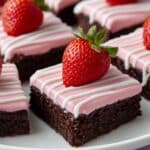 Delightfully rich and chocolatey heart-shaped brownies topped with a sweet and tangy strawberry frosting, perfect for special occasions like Valentine’s Day or any time you want to show some love through baking.