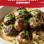 This classic Swedish Meatballs recipe features tender meatballs made from a blend of ground beef and pork, seasoned with warm spices, and served in a rich, creamy gravy. Perfectly browned and simmered in a luscious sauce made with butter, flour, beef broth, heavy cream, and soy sauce, these meatballs deliver comforting, savory flavors ideal for a hearty meal.