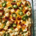 Keywords: jalapeno popper, cauliflower casserole, cheesy cauliflower bake, low carb casserole, spicy cauliflower dish, roasted cauliflower recipe