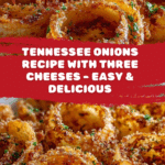 Tennessee Onions are a savory baked side dish featuring sweet Vidalia onions layered with a blend of melted cheddar, Monterey Jack, and Parmesan cheeses. Seasoned with garlic, thyme, salt, and pepper, and baked until golden and bubbly, these onions offer a delicious alternative to traditional onion rings.