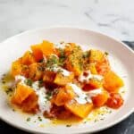 A traditional and comforting pumpkin stew cooked gently on the stovetop with aromatic spices, tomato, and a refreshing garlic yogurt topping. This recipe highlights the natural sweetness of pumpkin balanced with turmeric, tomato paste, and a hint of chilli for mild heat, perfect for a wholesome and flavorful meal.