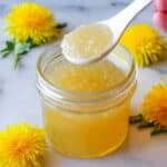 Keywords: dandelion jelly, wildflower jelly, homemade jelly, honey jelly, foraged food, spring recipes, preserves