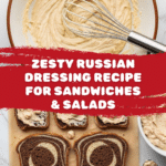 A tangy and creamy homemade Zesty Russian Dressing that combines mayonnaise, sour cream, ketchup, dill pickle relish, and bold horseradish flavor. Perfect for sandwiches, salads, or as a dip, this dressing offers a balanced zest and creaminess with a hint of spice.